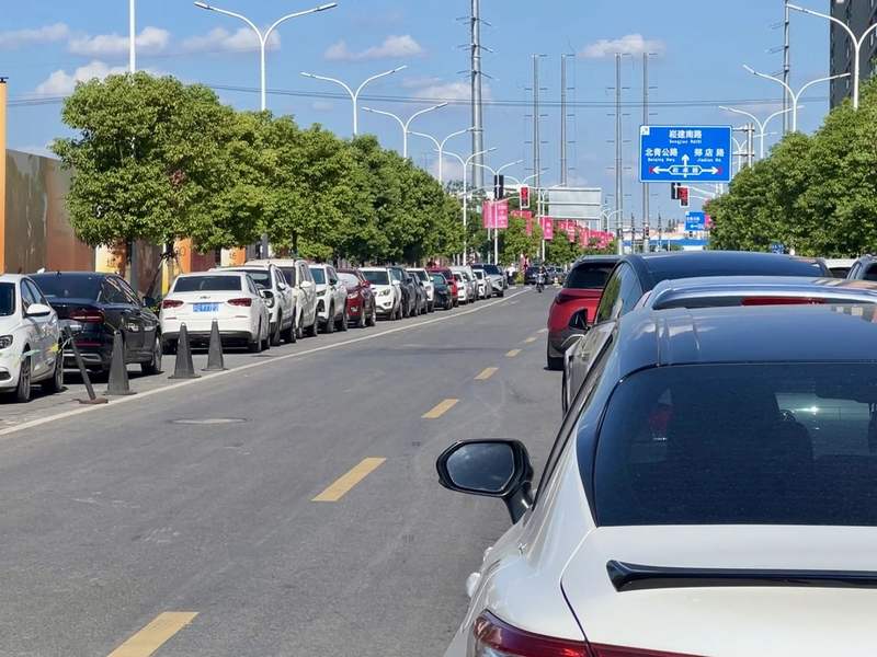 8月30日下午,青浦区重固镇附近多个新楼盘迎来消费者,车辆沿马路两侧一字排开。新京报贝壳财经记者俞金旻摄