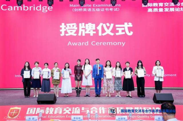 论坛期间,多场授牌仪式成为亮点,标志着国际教育合作迈入新阶段。在剑桥英语证书考试官方报名中心授权仪式中,赛格教育副总经理刘盈颖、赛格教育考试部副部长马艺男、刘昕院长共同为多家教育机构授牌;“国际教育杰出影响力”奖项颁发给金翅膀教育等7家单位,CCTV《中华影响力》栏目代表与TESOL国际教师资格认证培训导师Robert为获奖单位颁奖;此外,还举行了“词王争霸组委会授权”与“香港巴克兰外国语学院分院授权”,为国际教育交流合作注入新动能。